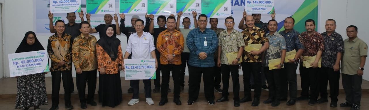 Dalam kesempatan tersebut Wakil Bupati Rianto menyerahkan langsung santunan jaminan kematian dan kecelakaan kerja kepada ahli waris peserta. Ia mengajak seluruh Camat dan perangkat Desa aktif mensosialisasikan program ini agar manfaatnya semakin luas. “Kepesertaan kita baru 41,3 persen, padahal dengan iuran hanya Rp16.800 per bulan, ahli waris bisa menerima santunan hingga Rp42 juta. Ini perlindungan yang nyata,” Ujarnya.