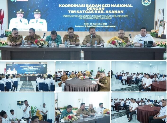 ASAHAN || Pemerintah Kabupaten Asahan bersama Badan Gizi Nasional (BGN) Perwakilan Kabupaten Asahan dan Tim Satgas Kabupaten menggelar rapat koordinasi percepatan Program Makan Gizi Gratis (MBG), di Aula Melati Kantor Bupati Asahan, Senin (29/09/2025).