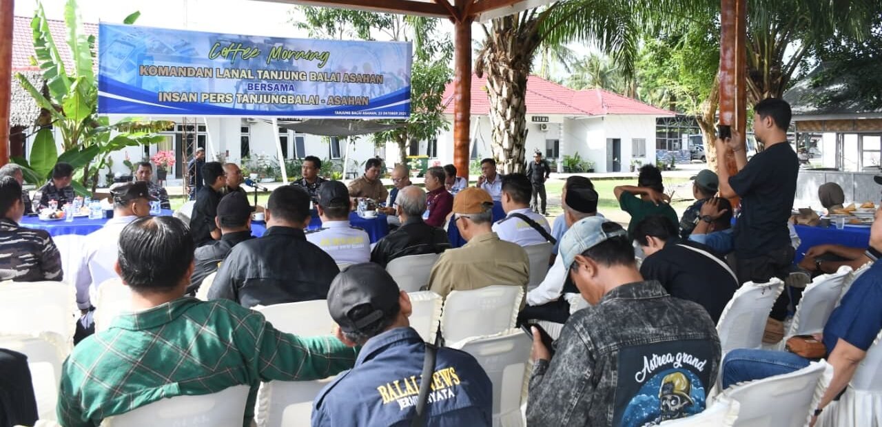 TANJUNG BALAI || Komandan Lanal Tanjung Balai Asahan Letkol Laut (P) Agung Dwi H.D, M.Tr.Opsla., CTMP, menggelar kegiatan Coffee Morning bersama insan pers wilayah Tanjung Balai – Asahan, di Pendopo Kencono, Mako Lanal TBA, Jalan Sei Berombang, Desa Asahan Mati, Kecamatan Tanjung Balai, Kabupaten Asahan, Kamis (23/10/2025).