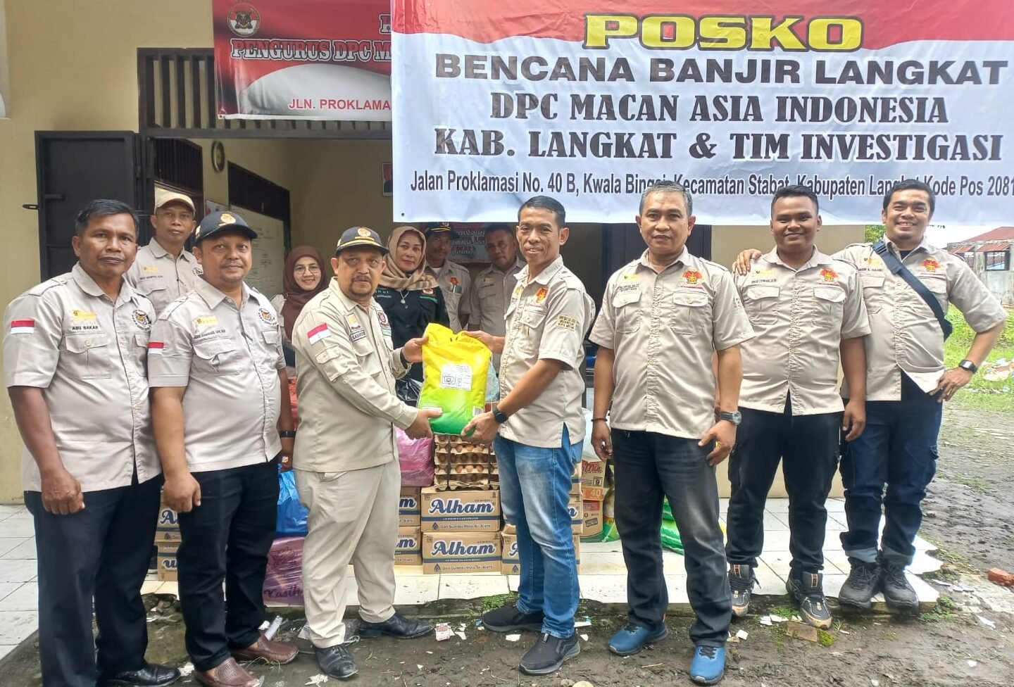 LANGKAT || DEWAN Pimpinan Cabang Macan Asia Indonesia (DPC MAI) Kota Medan secara resmi menyerahkan bantuan logistik kepada DPC MAI Kabupaten Langkat untuk korban banjir, Sabtu (13/12/2025). Aksi tersebut terlaksana berkat dukungan tulus dari para donatur mempercayakan donasinya melalui DPC MAI Kota Medan.