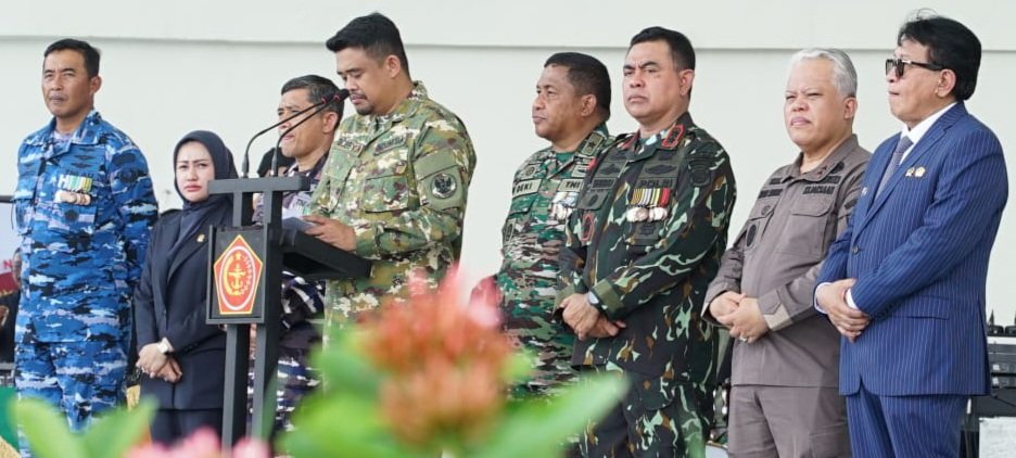 Upacara yang melibatkan 2.506 personil TNI tersebut berjalan lancar dengan inspektur upacara Gubernur Sumatera Utara Bobby Nasution.