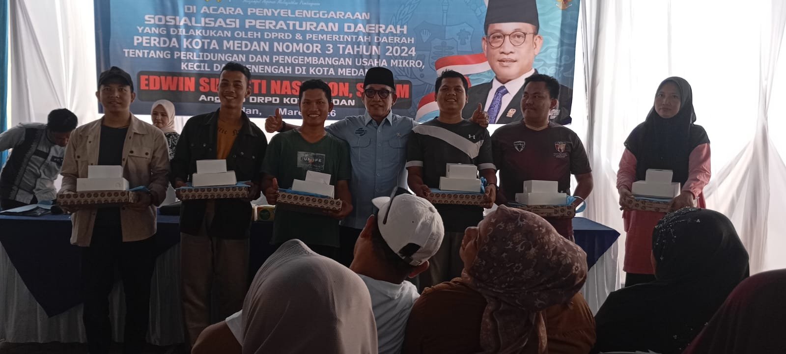 MEDAN || Anggota DPRD Medan dari Fraksi Partai Amanat Nasional (PAN), Edwin Sugesti Nasution, SE, MM kembali melaksanakan Sosialisasi Peraturan Daerah (Perda) Nomor 3 Tahun 2024 tentang Perlindungan dan Pengembangan UMKM Kota Medan, Minggu (15/3/2026) di Jalan Asrama Kelurahan Pulo Brayan Bengkel Baru Kecamatan Medan Timur