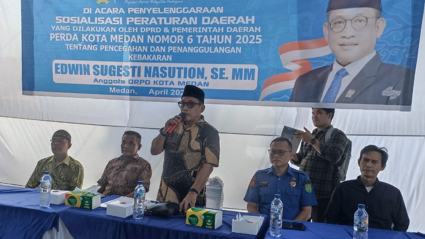 MEDAN || Anggota DPRD Kota Medan, Edwin Sugesti Nasution, melaksanakan kegiatan Sosialisasi Peraturan Daerah (Sosper) terkait Penanggulangan Kebakaran sesuai dengan Perda Nomor 6 Tahun 2025.