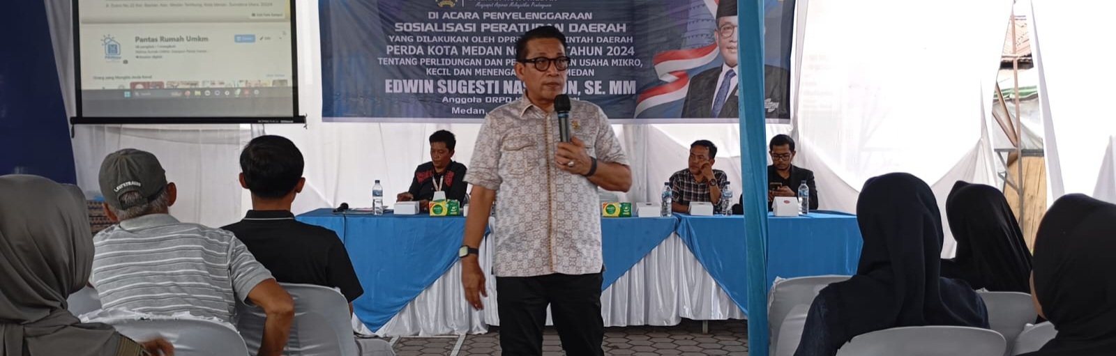 MEDAN || Anggota DPRD Medan dari Fraksi Partai Amanat Nasional (PAN), Edwin Sugesti Nasution, SE, MM kembali melaksanakan Peraturan Daerah Kota Medan ke-2 tahun anggaran 2026 yakni,Sosialisasi Peraturan Daerah (Perda) Nomor 3 Tahun 2024 tentang Perlindungan dan Pengembangan UMKM Kota Medan, Minggu (8/2/2026) pagi dan sore di Jalan Asrama Kelurahan Bengkel Baru Kecamatan Medan Timur dan Jalan Kol.Yos Sudarso Km.9.3 Link 2 Kelurahan Mabar Kecamatan Medan Deli.