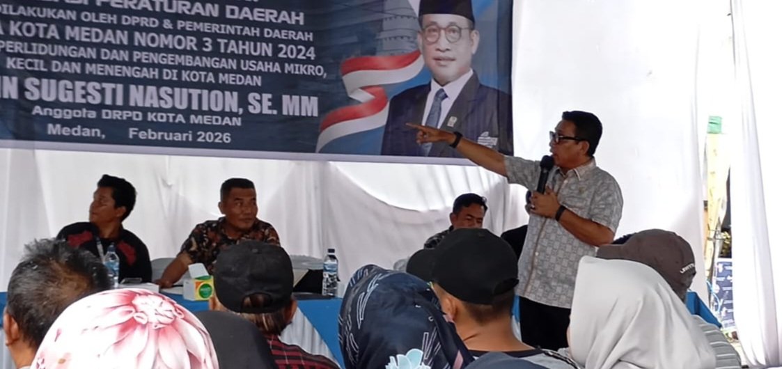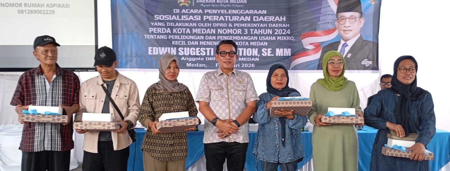 MEDAN || Anggota DPRD Medan dari Fraksi Partai Amanat Nasional (PAN), Edwin Sugesti Nasution, SE, MM kembali melaksanakan Peraturan Daerah Kota Medan ke-2 tahun anggaran 2026 yakni,Sosialisasi Peraturan Daerah (Perda) Nomor 3 Tahun 2024 tentang Perlindungan dan Pengembangan UMKM Kota Medan, Minggu (8/2/2026) pagi dan sore di Jalan Asrama Kelurahan Bengkel Baru Kecamatan Medan Timur dan Jalan Kol.Yos Sudarso Km.9.3 Link 2 Kelurahan Mabar Kecamatan Medan Deli.