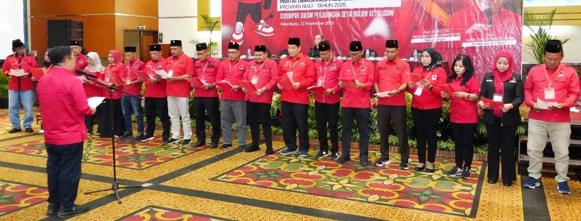PEKANBARU || Susunan kepengurusan DPC PDI Perjuangan Kabupaten Bengkalis resmi dilantik dalam prosesi khidmat yang digelar di Hotel Labersa, Sabtu malam (22/11/2025). Pelantikan dilakukan langsung oleh Ketua Bidang Industri, Perdagangan, dan Tenaga Kerja DPP PDI Perjuangan, Darmadi Durianto.