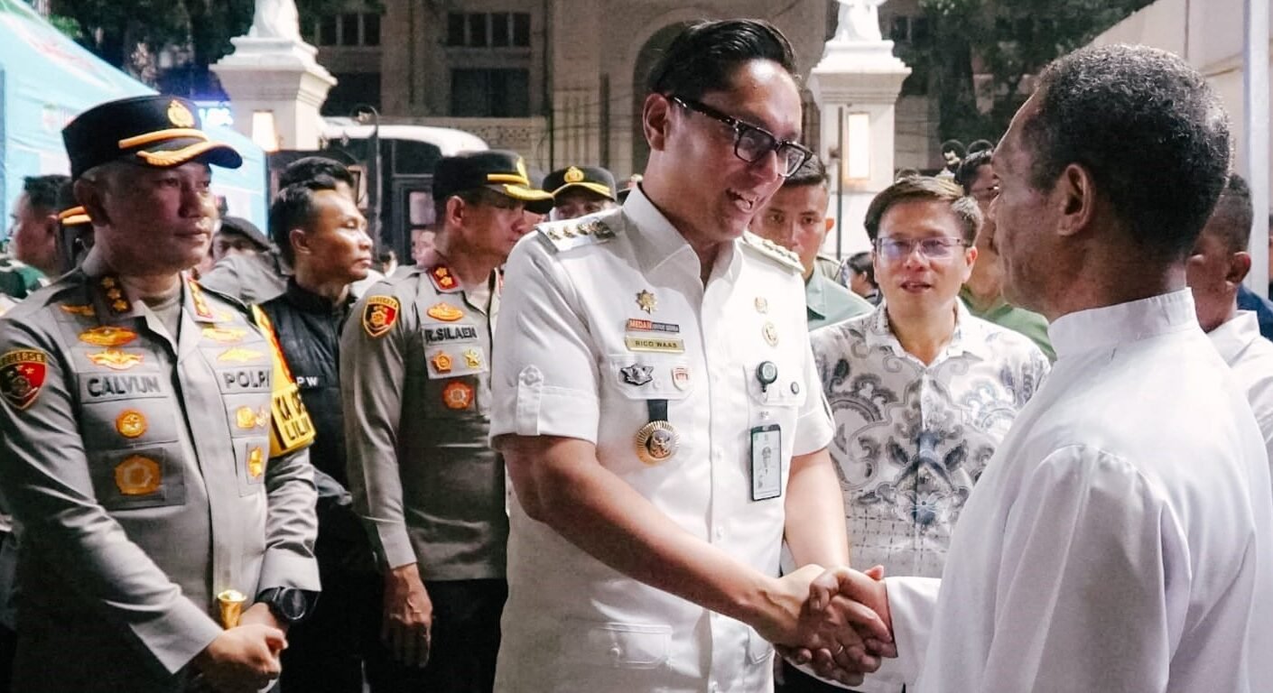 MEDAN || Wali Kota Medan, Rico Tri Putra Bayu Waas memastikan perayaan malam Natal di Kota Medan berjalan aman dan kondusif. Bersama dengan unsur Forkopimda Kota Medan, Rico Waas memantau langsung situasi keamanan di beberapa Gereja, Rabu (24/12/2025) malam.
