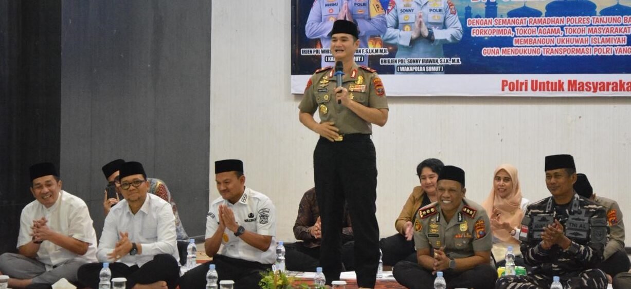 Kegiatan yang mengusung tema “Semangat Ramadhan, Polda Sumut, Tokoh Agama, Tokoh Masyarakat, dan Ormas Membangun Ukhwah Islamiyah Guna Mendukung Transformasi Polri yang Presisi” tersebut berlangsung pada Rabu (11/3/2026) pukul 17.00 WIB, di Pendopo rumah dinas Wali Kota Tanjun Balai